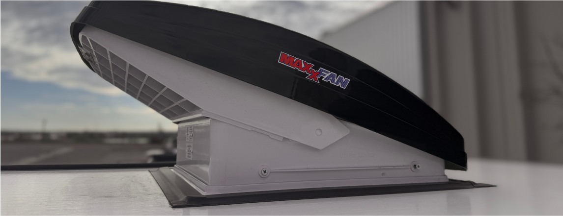 Want to keep stuff off the roof? We offer the manual fan option for the front slant. Lid opens to block some rain. This requires a solar generator like EcoFlow or Goal Zero to work. SOLAR GENERATOR IS NOT INCLUDED.