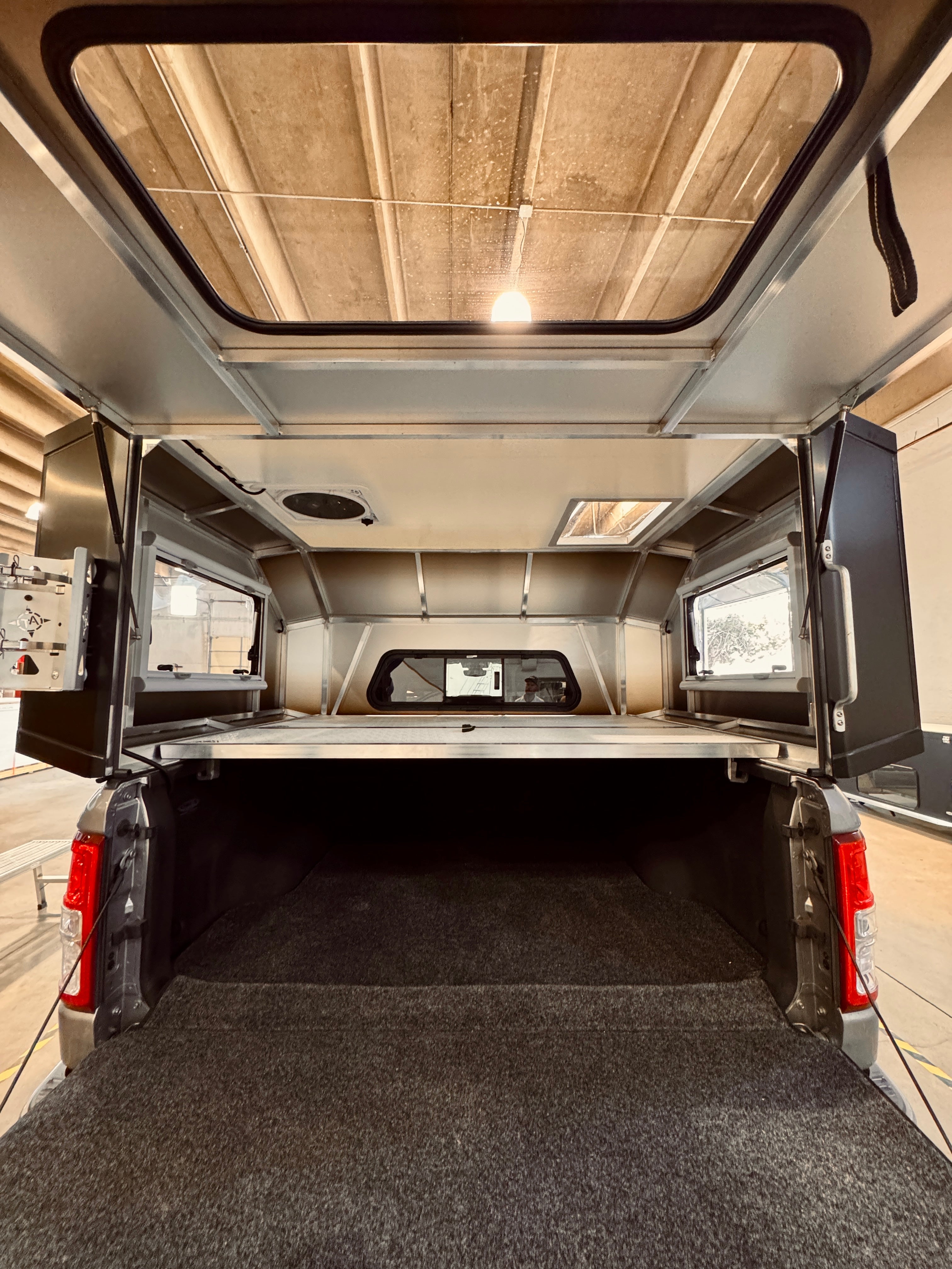 This isn’t your grandpa’s topper. Stainless steel hardware for smooth, rust free operation. Marine grade sealants, reinforced aluminum framing, and thick 1/16” aluminum skins make MoonLander is an overbuilt escape pod. It has a 1.25" thick honeycomb roof made of UV stabilized polypropylene that helps insulate the camper and supports 2-3 people on top. Hop on top to get a viewpoint, watch the sunset or mount gear. It’s ready for the most demanding environments.