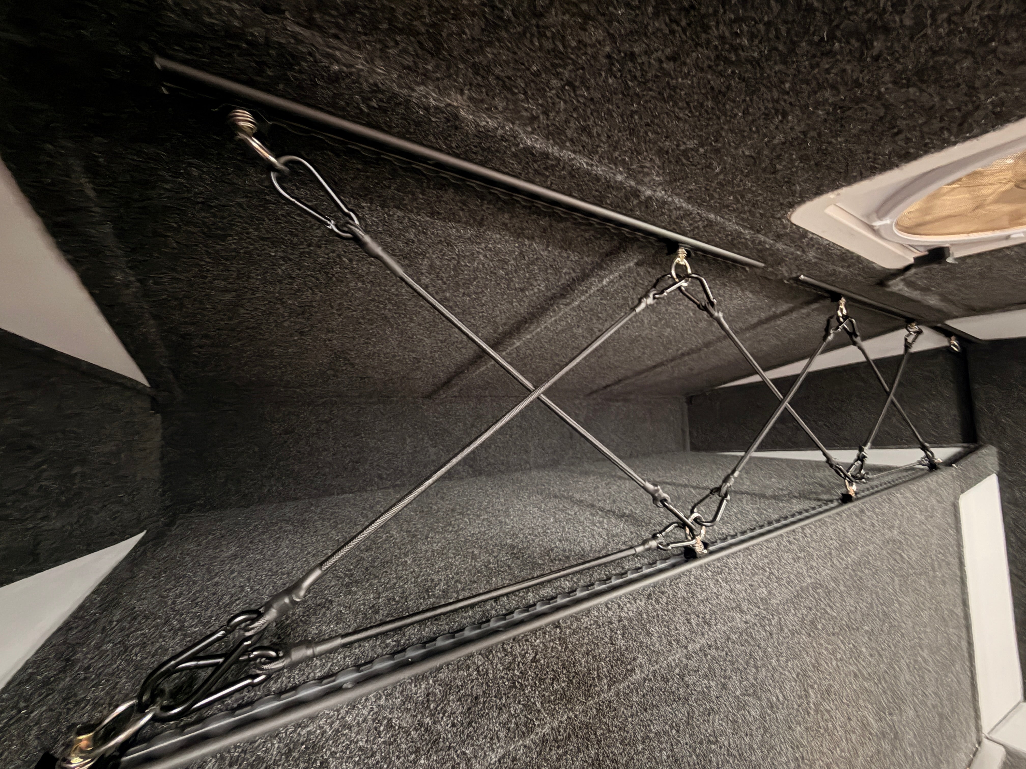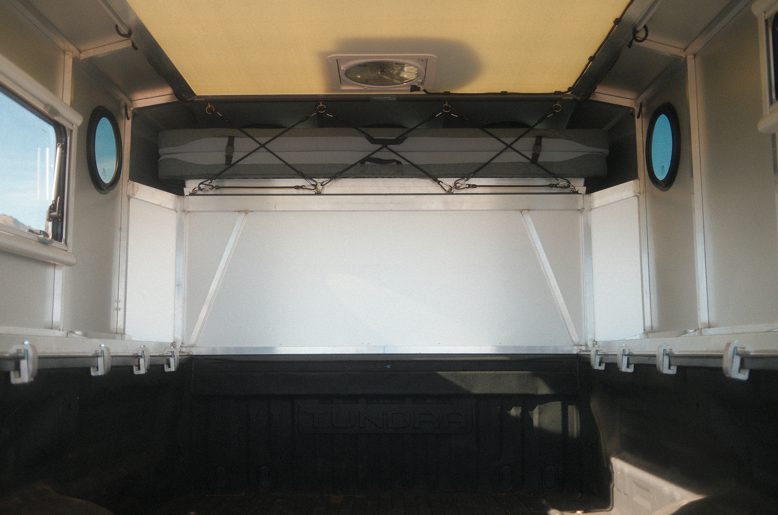 Store your bed panels and mattress over the cab for maximum interior space. Whether you're hauling dirt bikes, creating a living space, or keeping the bed tucked away, you’ll have all the space you need.