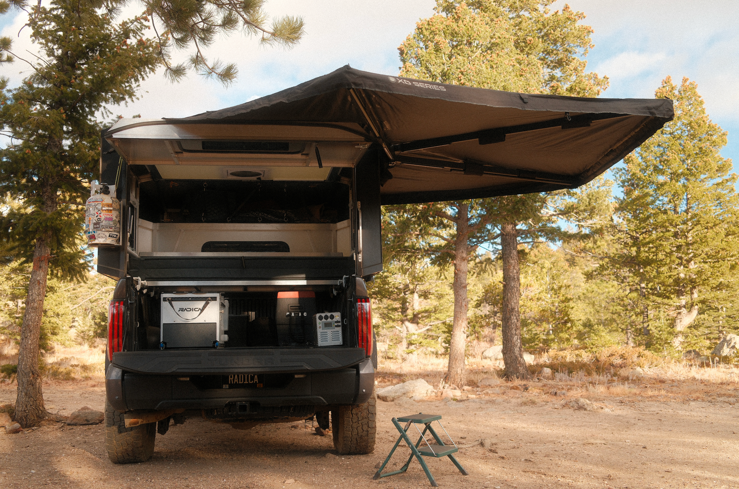 MoonLander X takes your truck's capability to the next level. MLX offers class-leading storage space for all of your gear. With the cab-over section you gain massive amounts of storage that's easily accessible while in bed mode, additional head room inside, couch mode, and stow mode to turn your camper into a toy hauler.