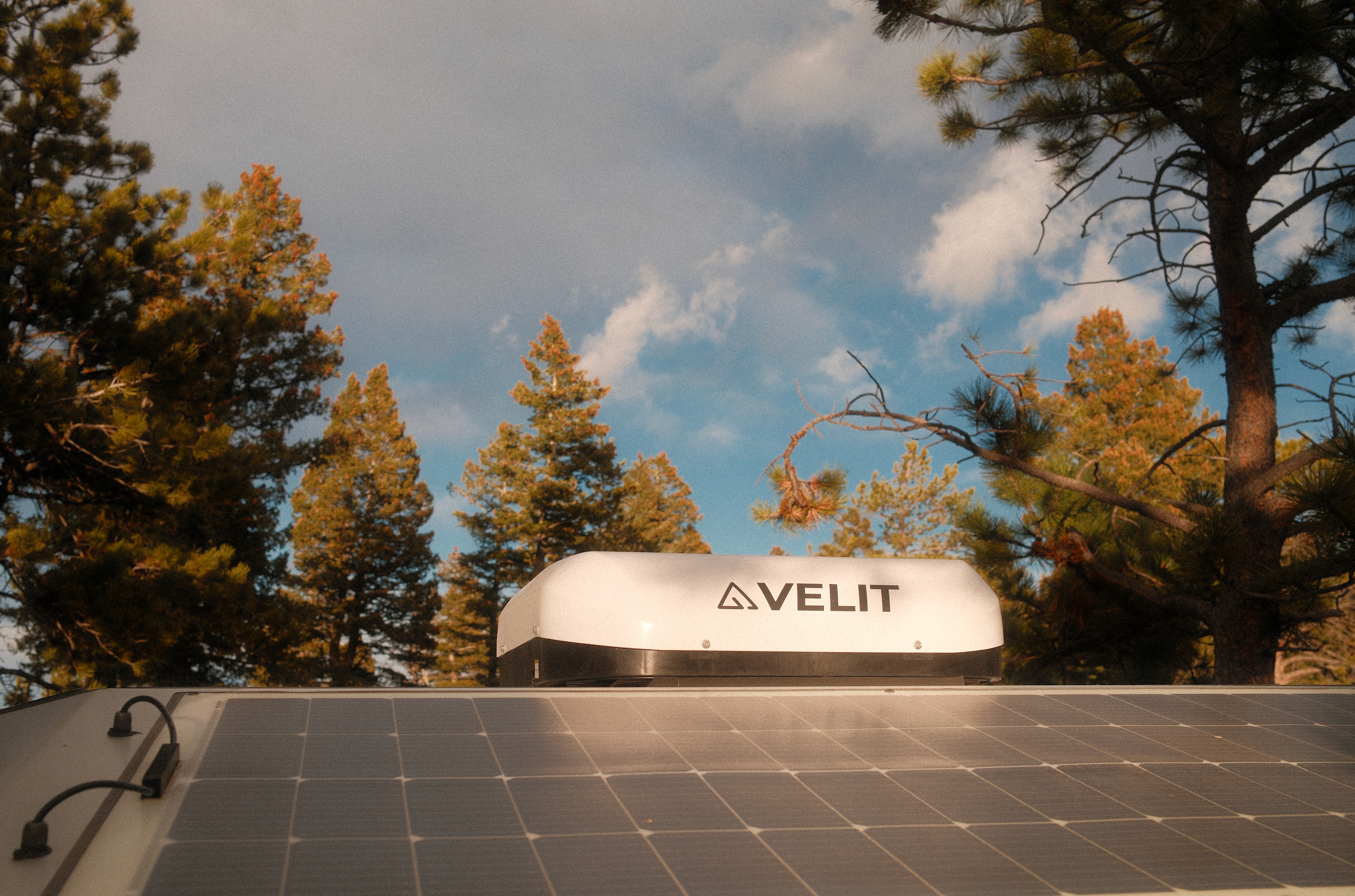 A/C is finally here! The Velit 2000R Mini is a low profile 55 Lbs. rooftop A/C unit that runs on high amp 12V power. Pair this with our insulation package and power bank to beat the heat in the summer.