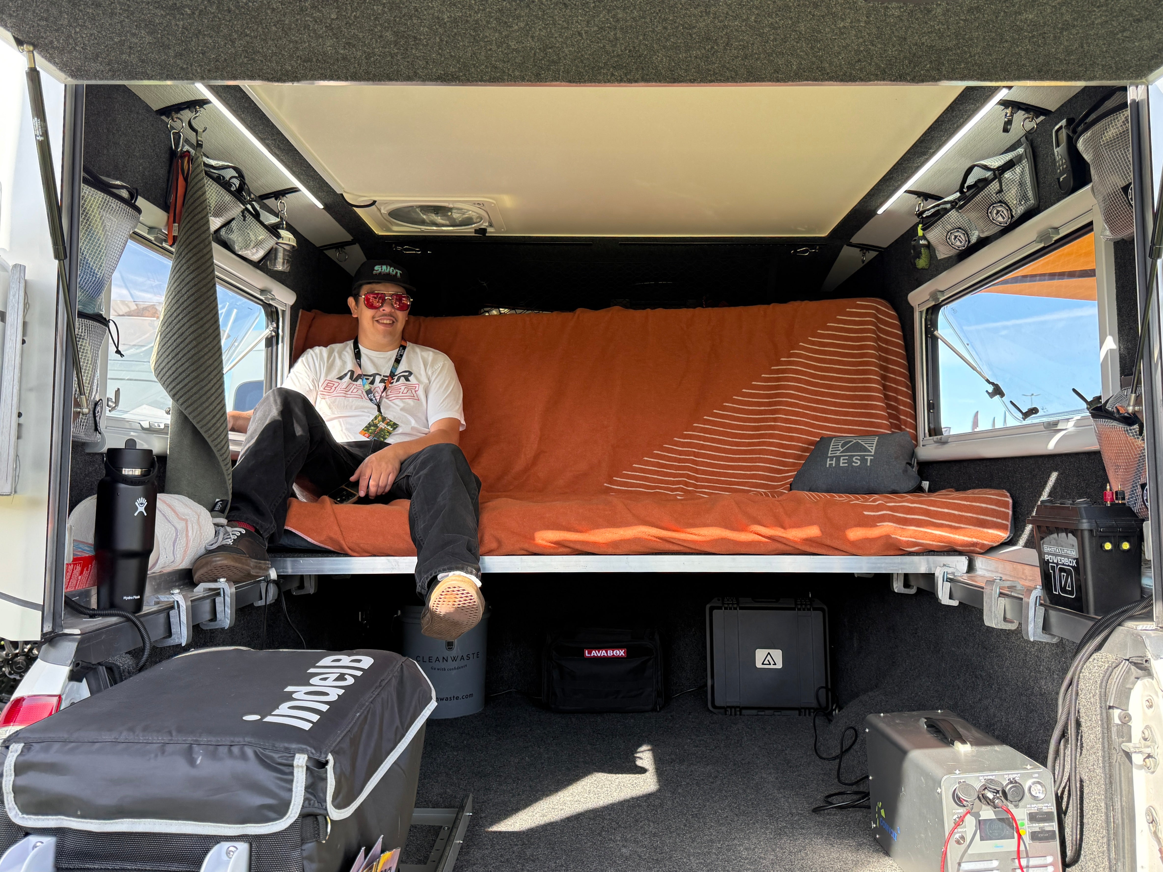 Lay the bed panels flat to enjoy the original East-to-West sleeping setup MoonLander offers. With ample headroom, you can sit up comfortably, stretch out, and easily access your gear from the cab-over section. 6FT to 7FT of sleeping length, depending on configuration.