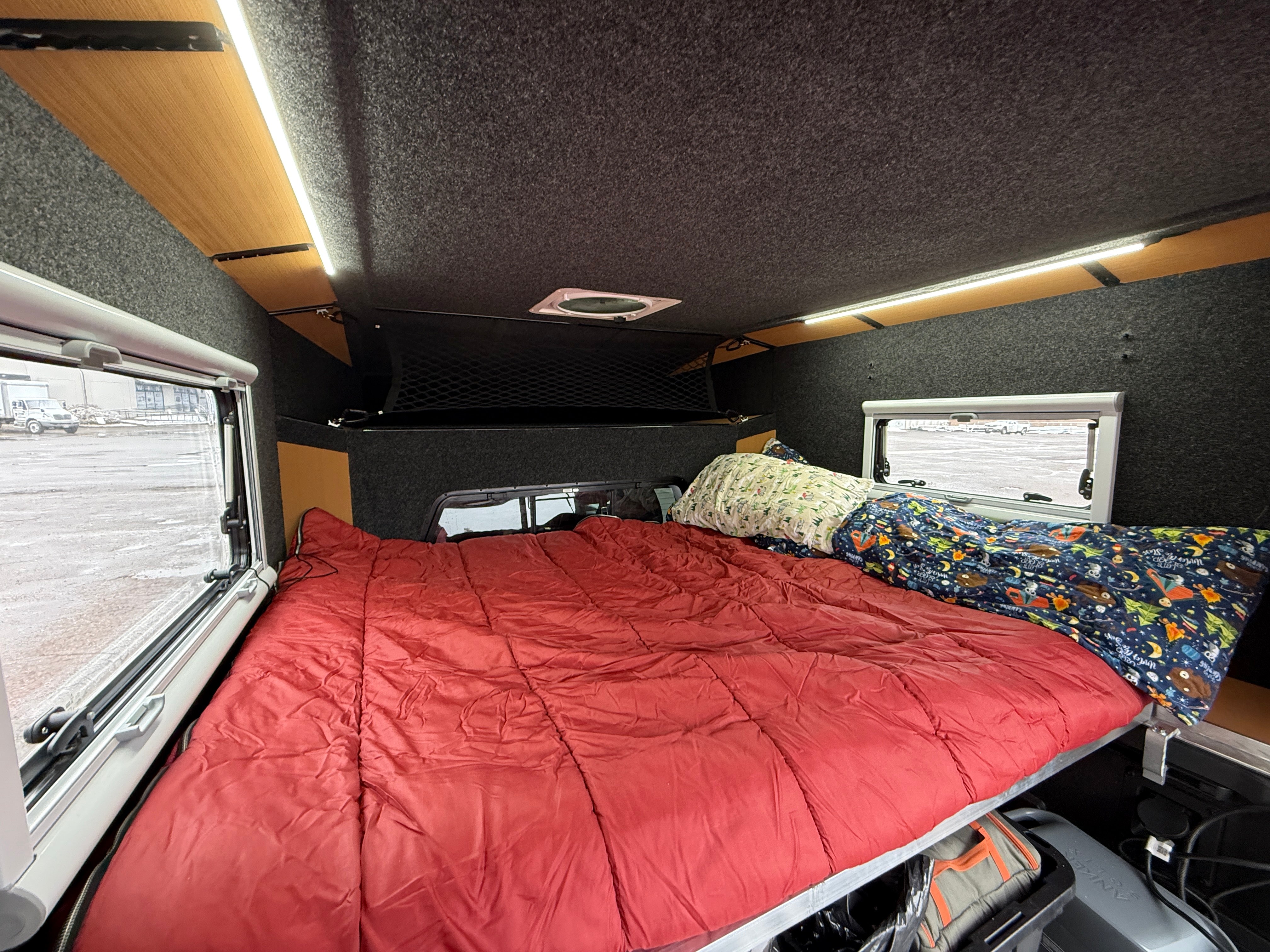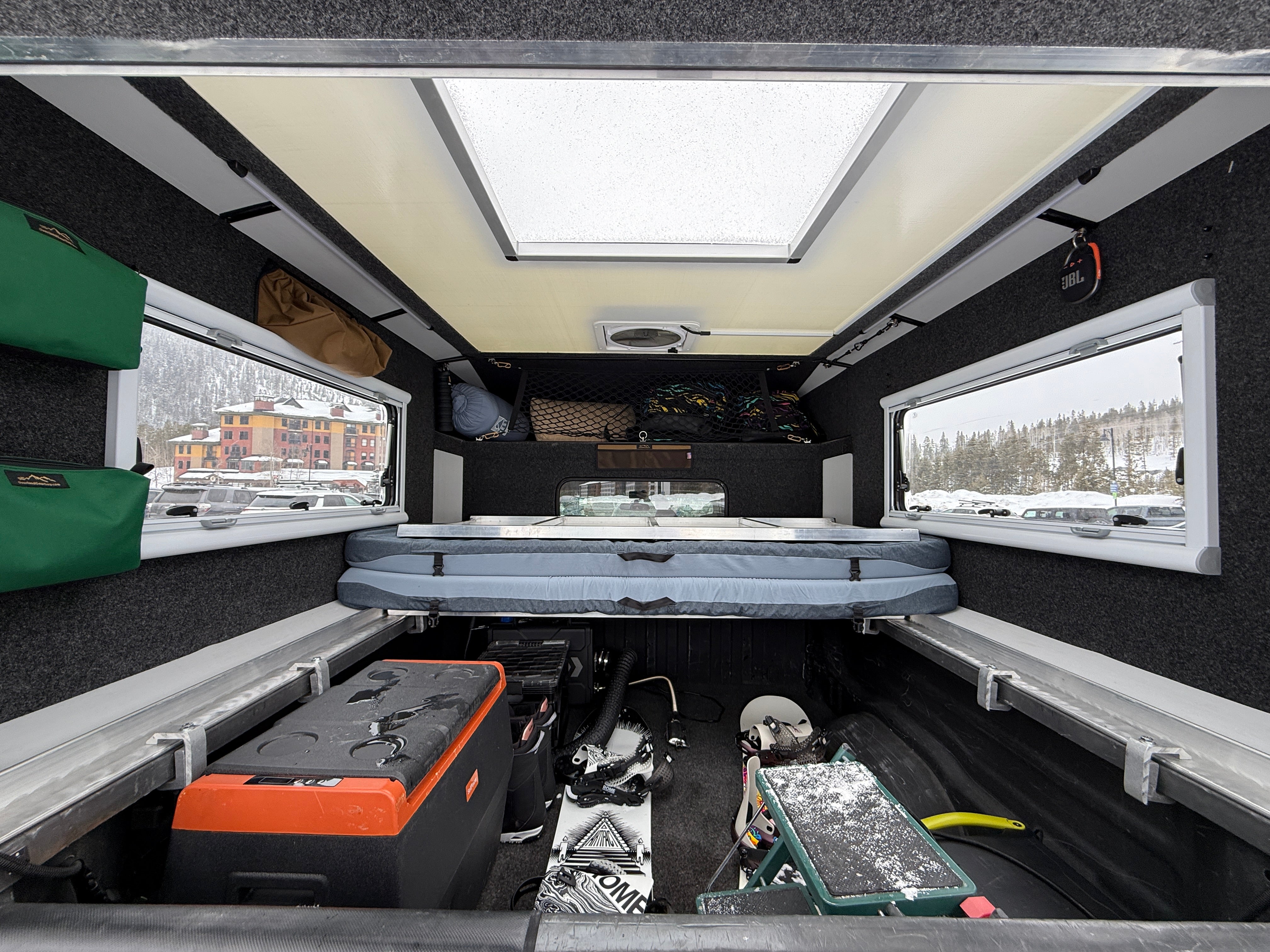 Store your bed panels and mattress over the cab for maximum interior space. Whether you're hauling dirt bikes, creating a living space, or keeping the bed tucked away, you’ll have all the space you need.
