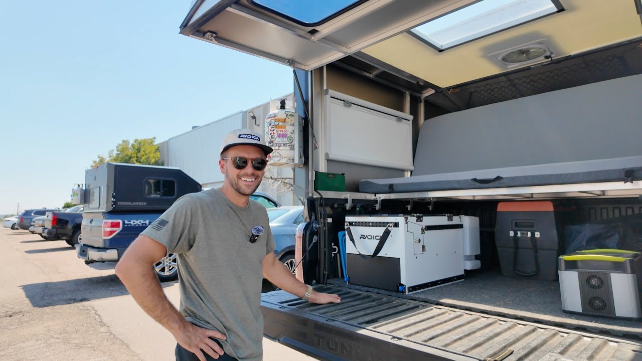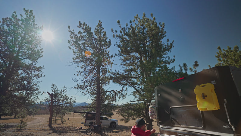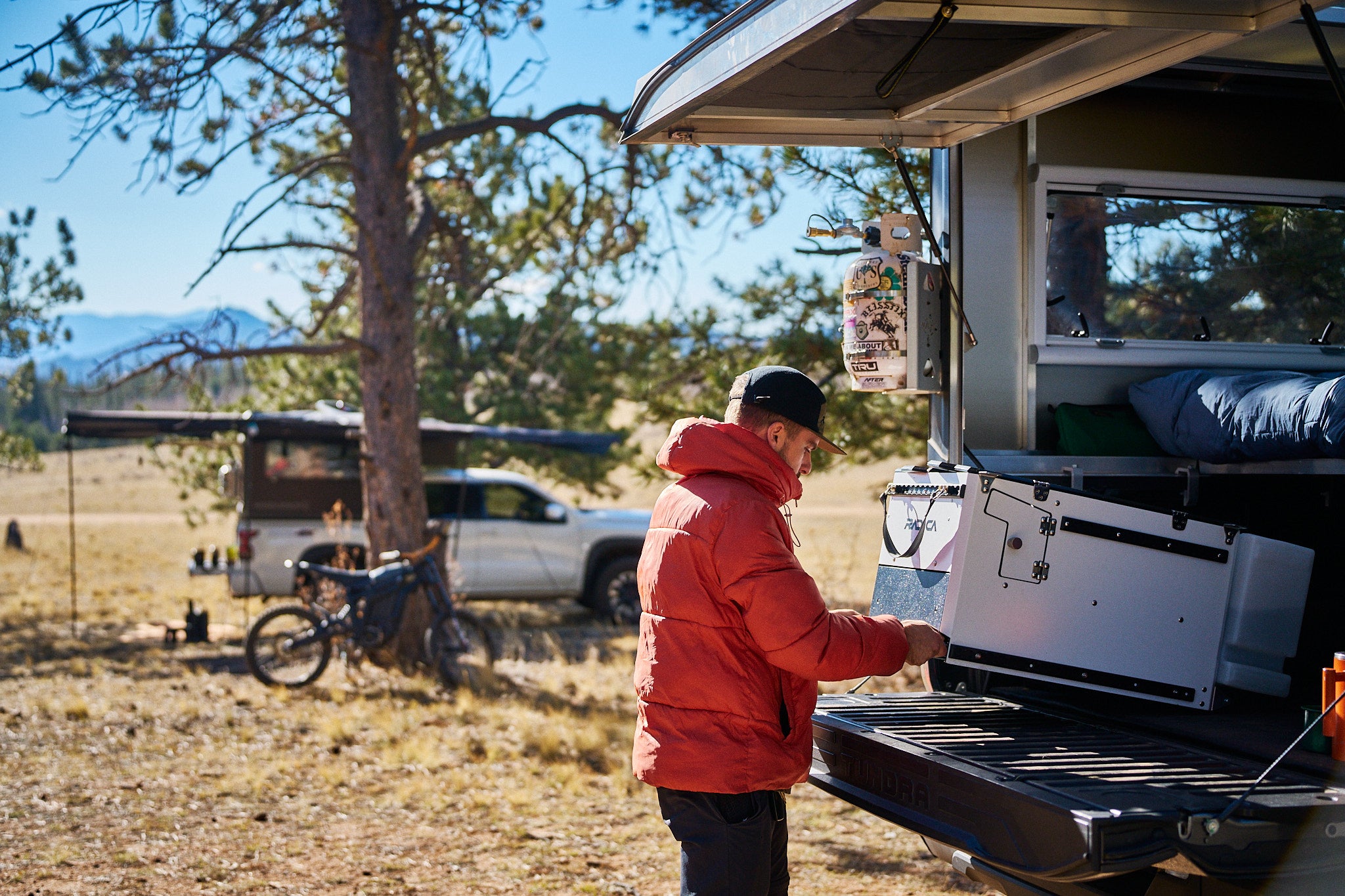 AfterBurner features a Dometic GO Faucet and RotoPax water tank built in. The Dometic faucet has a built in pump and is rechargeable. The RotoPax has a quick mount and quick disconnect for easy removal and replenishment. The faucet swings open for easy water bottle fills at night and on the road in your truck camper or SUV.